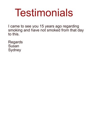 It's a fresh new healthier approach to quit smoking that effectively changes the way you think about smoking during the session & onwards. (see the testimonials)
